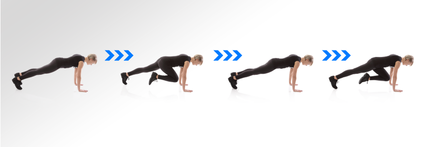 Set yourself up in a plank position and drive your knees to your chest in a controlled yet fast manner.